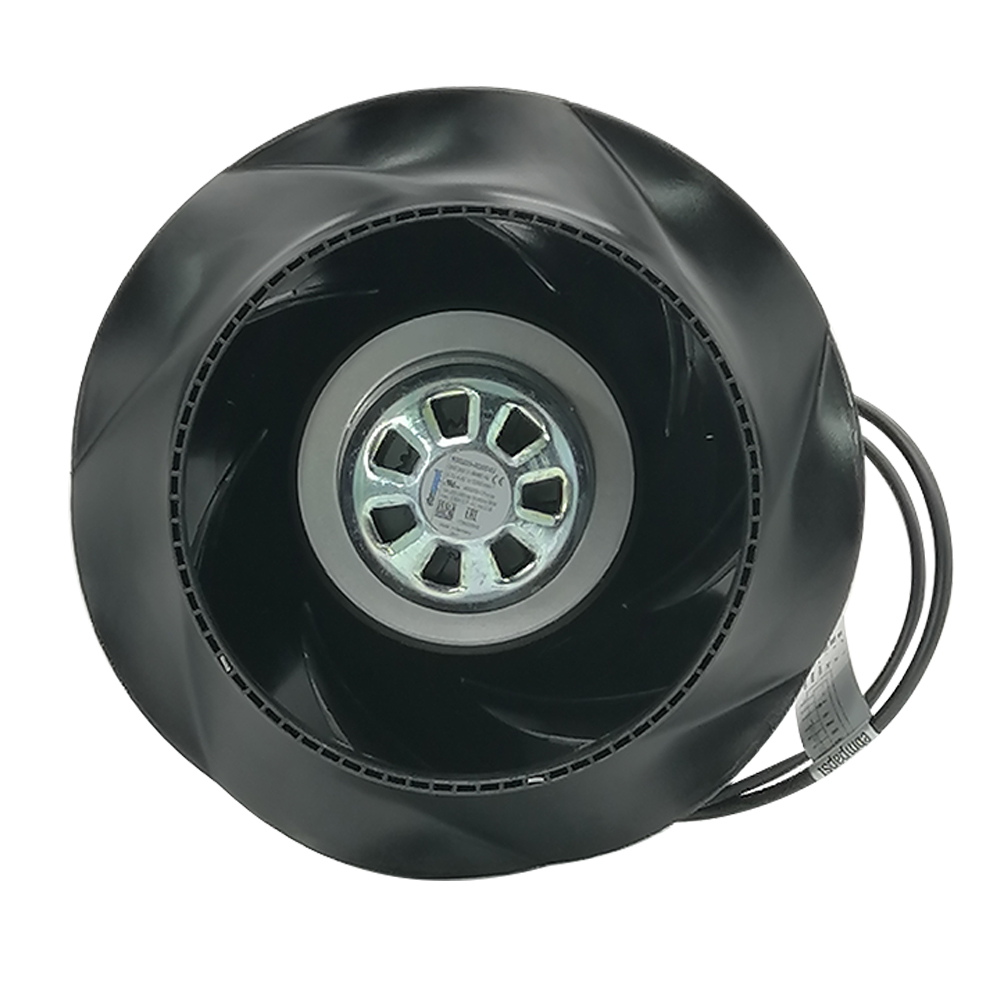 離心風機將空氣沿著電機軸向吸入,并沿著電機徑向排出。離心風機的特點是壓力升高快,這主要依賴于葉輪的寬度、空氣性能特性和適當的大流量。