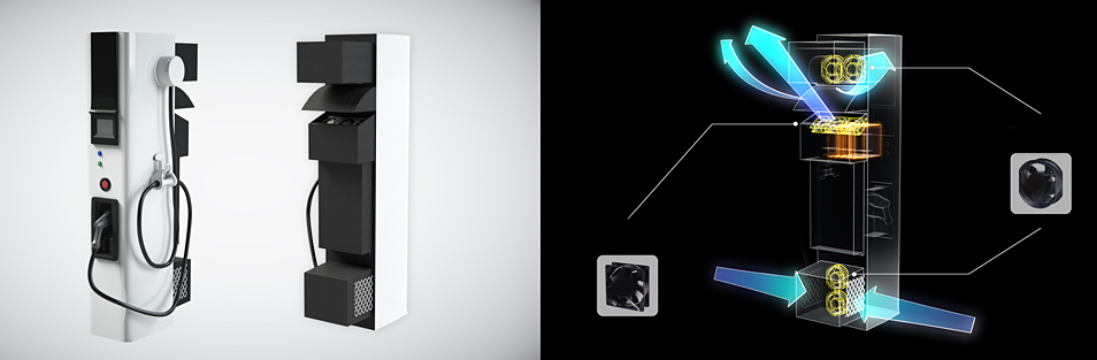 相比于其他電源,充電樁的系統散熱量相對更多,對系統熱設計要求極為嚴格。因此需要效率更高,散熱能力更強,具有優秀的防水防塵能力的散熱風扇。