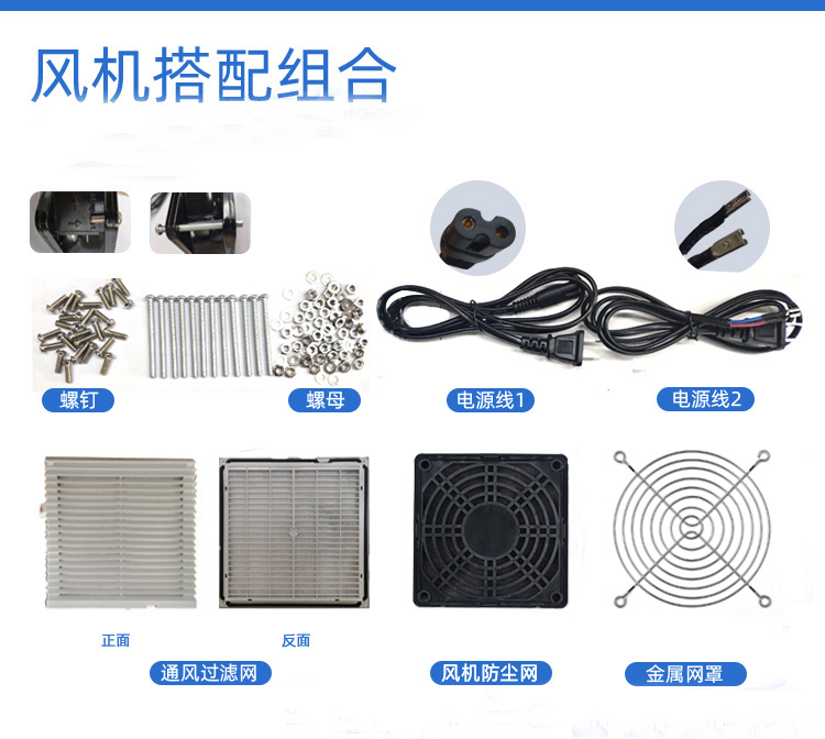 風機配件:端子、電源線、通風過濾網、防塵網罩等