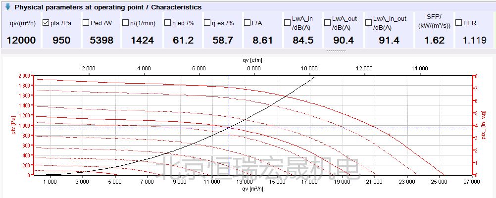 改建完成后, 實測項目整體節能30%,風機風量表現也顯著提升。經過計算,改建前僅1臺AC皮帶輪傳動的風機功耗為15.4KW,工作點為950Pa@24000m³/h。使用EC風機改建后選用2臺K3G630系列,總功耗僅13.52kW,且滿足原有風機工作點時單臺功耗僅5.4KW,2臺共10.8KW,節能達到30%。同時也保留了客戶將來對風量的提升空間。預計不到2年,節約的電費就可收回改造的全部成本。