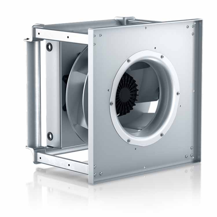 甄選Ebmpapst RadiPac離心風機K3G630系列。功率在6.76KW,低功耗使其更加節能;風機直徑為630mm,結構緊湊的風機在AHU系統占用的空間更小;在靜壓950Pa的情況下,最大空氣流量可達16120 m³/h,大風量使效率更高、散熱能力更強;風機葉片通過空氣動力學的設計,在AHU系統中運行更為安靜。