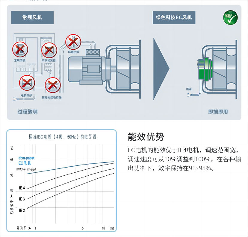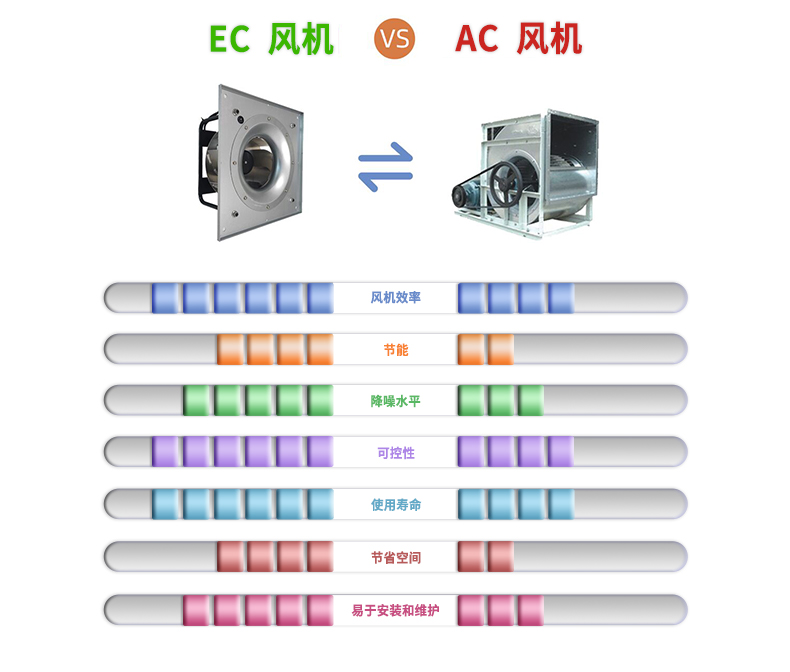 4.在長期運(yùn)行中,EC風(fēng)機(jī)的能耗比AC風(fēng)機(jī)低,維護(hù)成本也更低。
