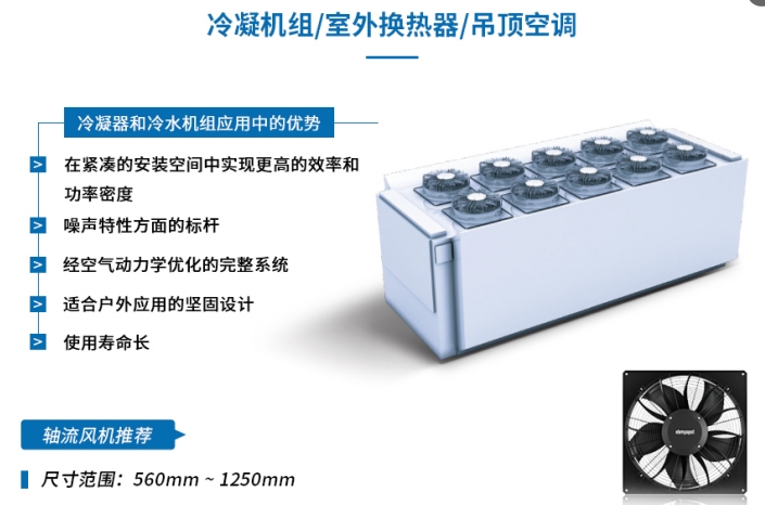 冷凝器和冷水機組應用中的優勢:在緊湊的安裝空間中實現更高的效率和功率密度、噪聲特性方面的標桿、經空氣動力學優化的完整系統、適合戶外應用的堅固設計、使用壽命長點贊(0) 分享(0) 閱讀(2066) -