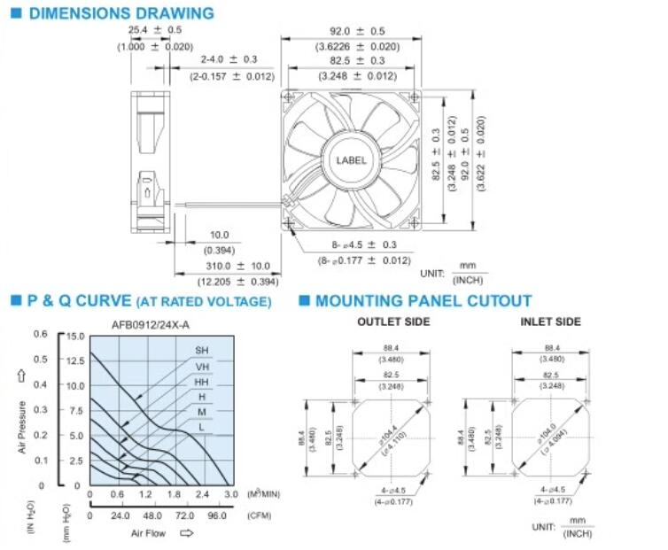 臺達Delta AFB0924SH-A軸流風機結構風量圖