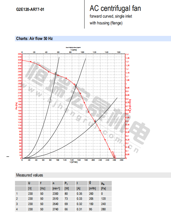 德國ebmpapst G2E120-AR77-01風機曲線圖