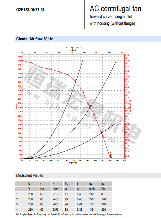 D1G160-DA33-52風量:980m³/h 電壓:48v 電流:2.9A 功率:112W 轉速:1250r/min