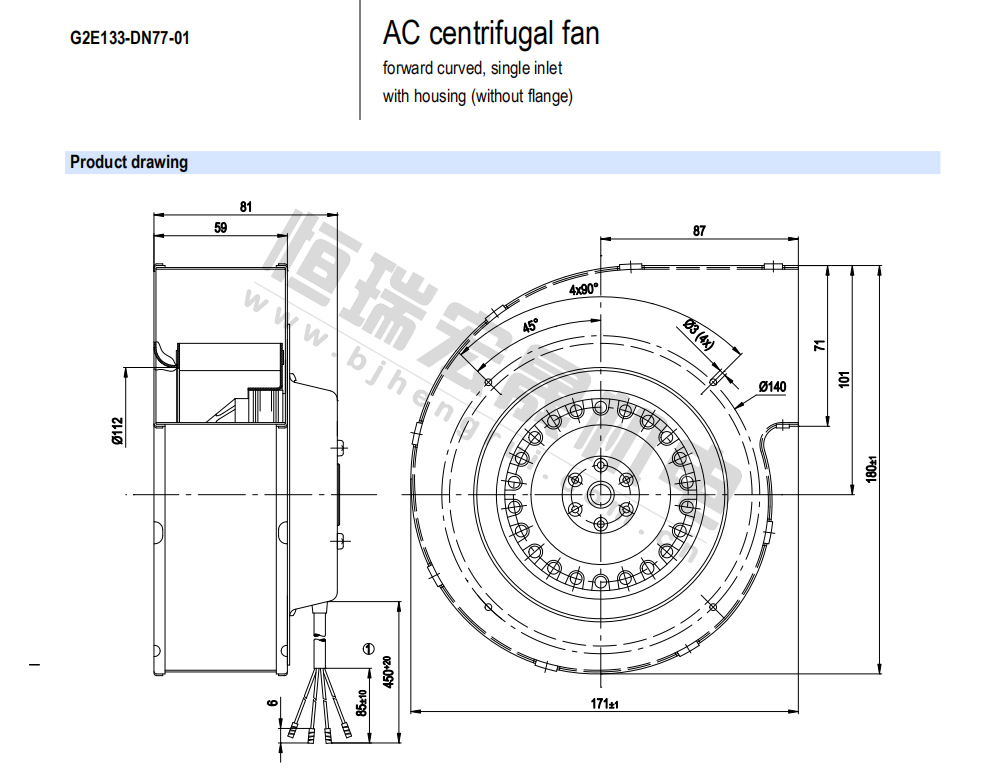 D1G133-AB29-52風量:700m³/h 電壓:24v 電流:5.6A 功率:105W 轉速: 1780r/min