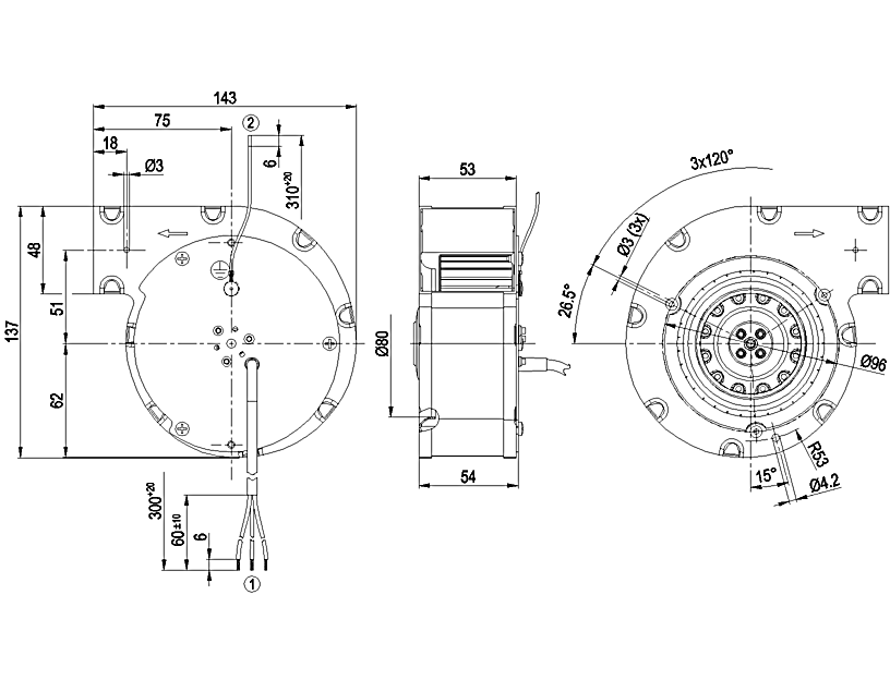 R1G108-AB41-02風量:200m³/h 電壓:48v 電流:1 A 功率:42W 轉速:3000r/min