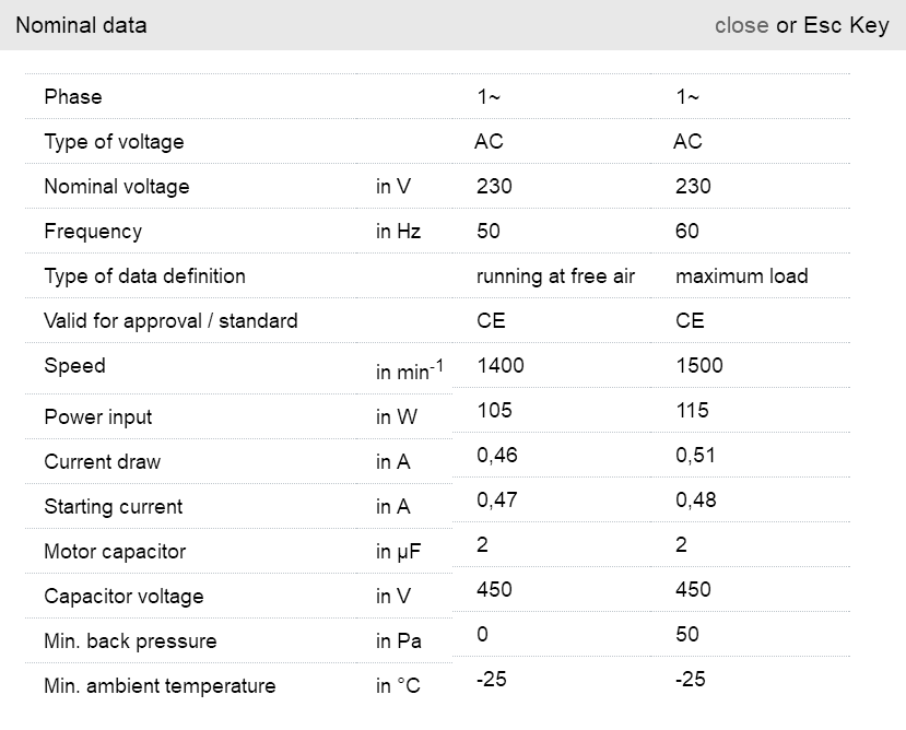 G1G140-AV17-02風量:400m³/h 電壓:24v 電流:2.5A 功率:54W 轉速:1750r/min