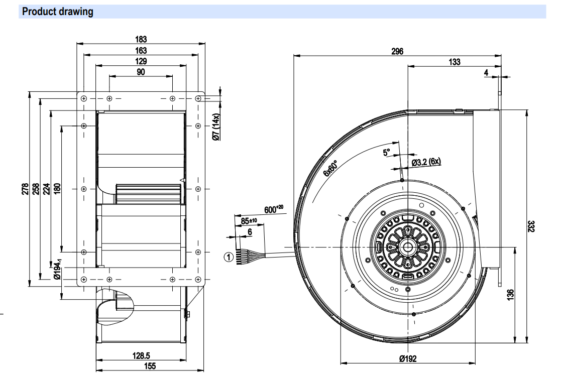 R1G140-AV17-02風量:400m³/h 電壓:24v 電流:2.5A 功率:54W 轉速:1750r/min