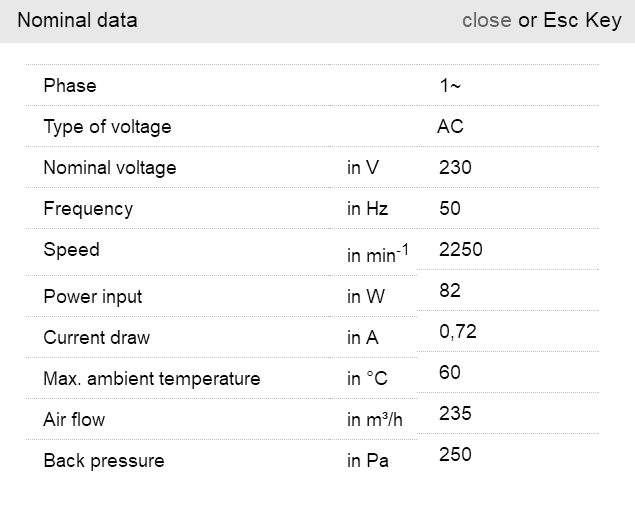 RER125-19/56風量:104m³/h 電壓:230v 電流:6.2A 功率:19W 轉速:2600r/min