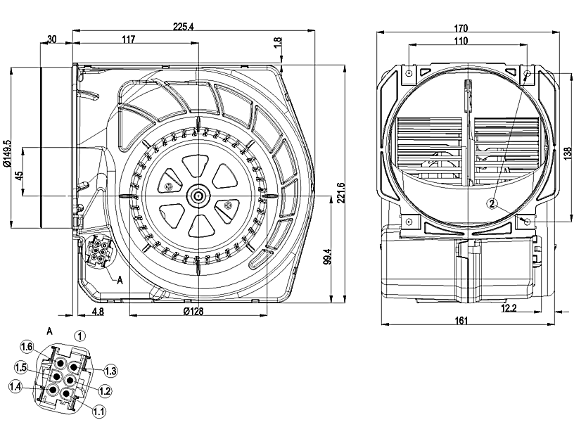 D1G133-AB39-52風量:700m³/h 電壓:48v 電流:2.8A 功率:105W 轉速: 1780r/min