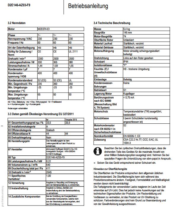 W2E250-HP06-01風量:1695m³/h 電壓:230v 電流:0.55A 功率:125W 轉速:2320r/min