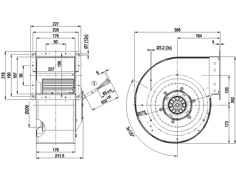 G1G160-BH29-52風量:505m³/h 電壓:24v 電流:5.8A 功率:105W 轉速:1750r/min