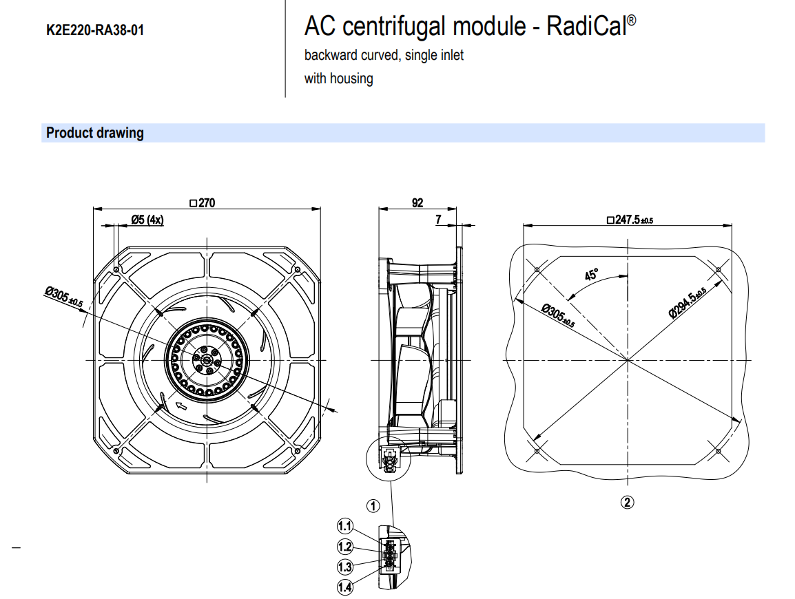 低價熱賣K2E220-RA38-01離心風機,適用于通風散熱制冷行業