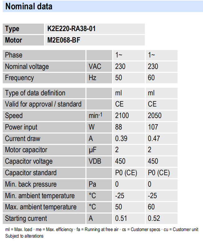 K2E250-RA50-01電壓:230V電流:1.25A功率:285W 轉速:2450r/min 重量:3.70KG