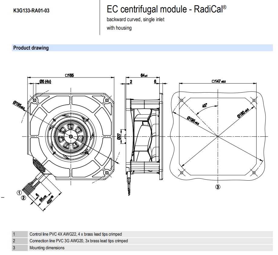 北京恒瑞宏晟優惠供應K3G133-RA01-03離心風機,適用于通風散熱制冷行