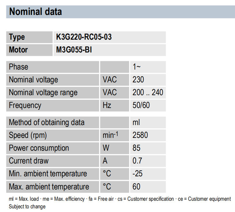 K3G190-RC05-03電壓:240V 電流:0.75A 功率:83W 轉速:3200r/min 頻率:50Hz