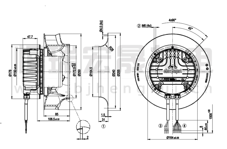 德國ebmpapst R3G250-RR09-P1離心風機結(jié)構(gòu)圖