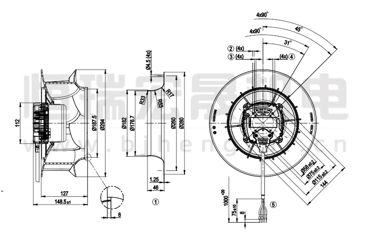 德國ebmpapst R3G280-RU65-82離心風機結構圖
