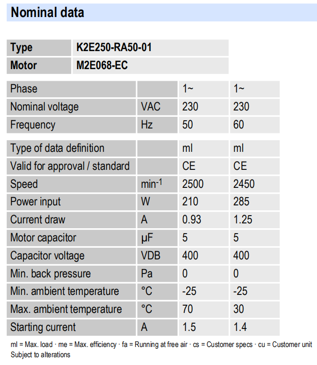 K2E250-RA50-01電壓:230V電流:1.25A功率:285W 轉速:2450r/min 重量:3.70KG