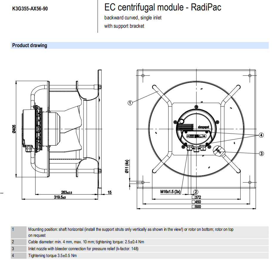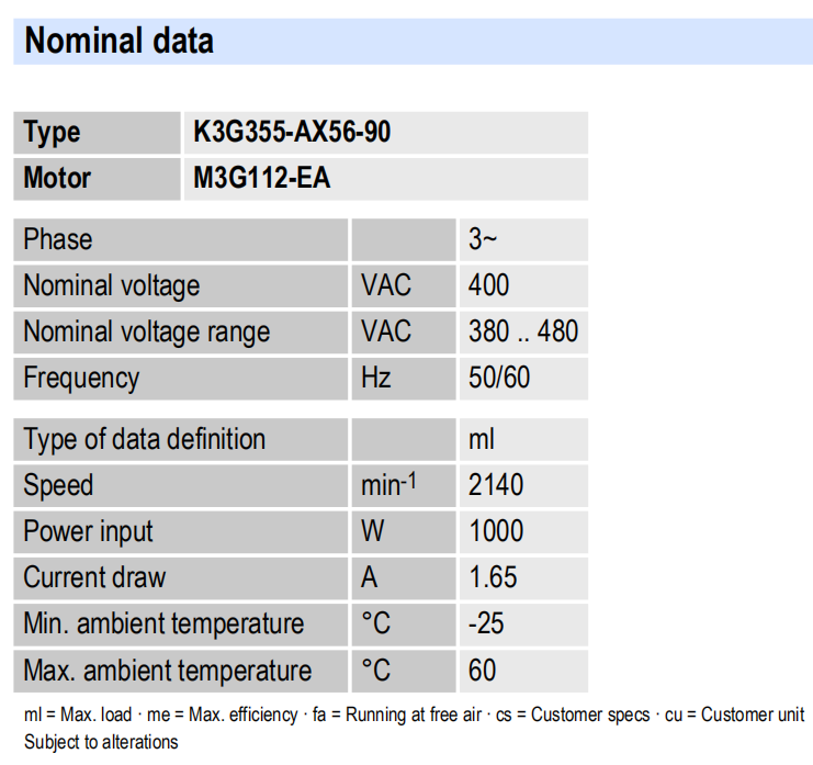K3G355-RT01-I2電壓:200-277V電流:3.30A功率:750W 轉速:2100r/min 重量:14.9KG