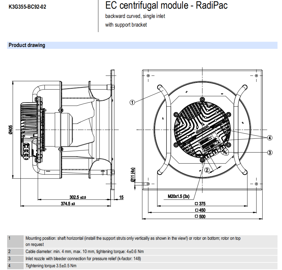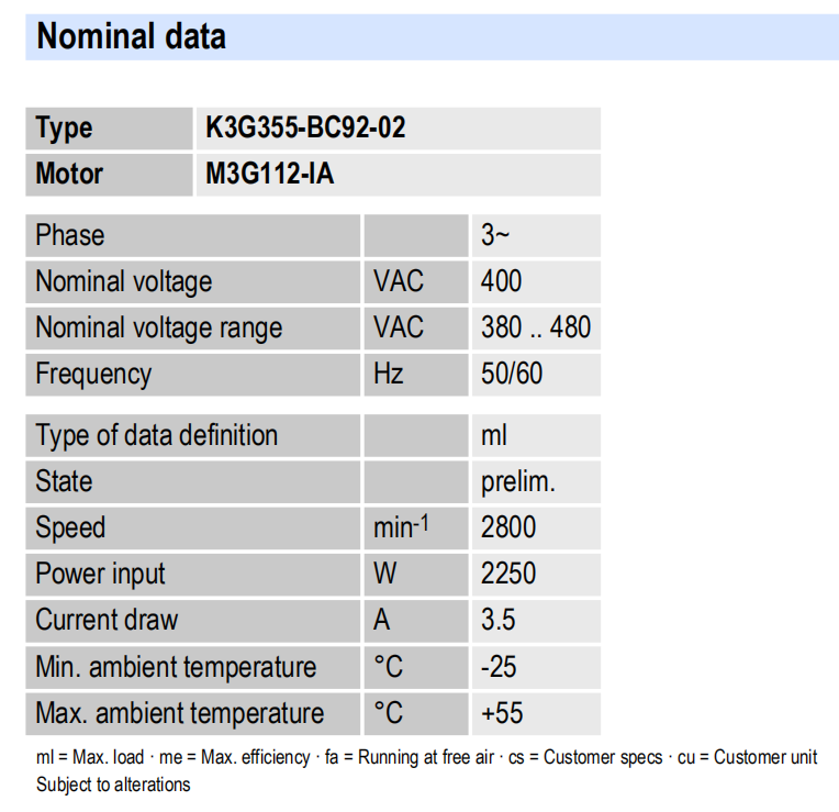 K3G355-RS02-H2電壓:200-277V電流:2.20A功率:500W 轉速:1850r/min 重量:11.6KG