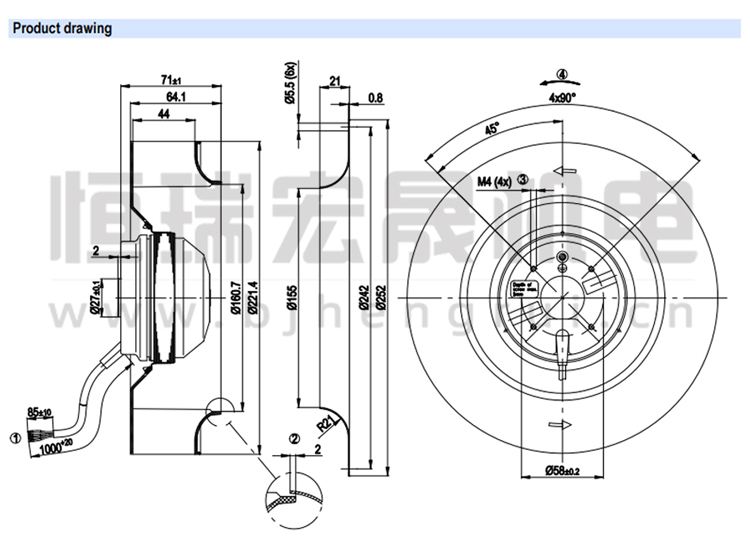 德國ebmpapst R2E220-AA40-C2 離心風機結構圖