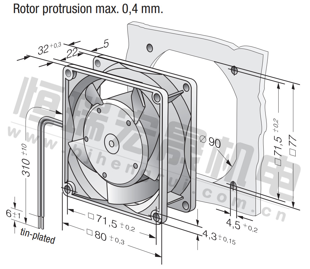 8314H風量:80m³/h 電壓:24v 噪音:48Db 功率:6.0W 轉速:5000r/min