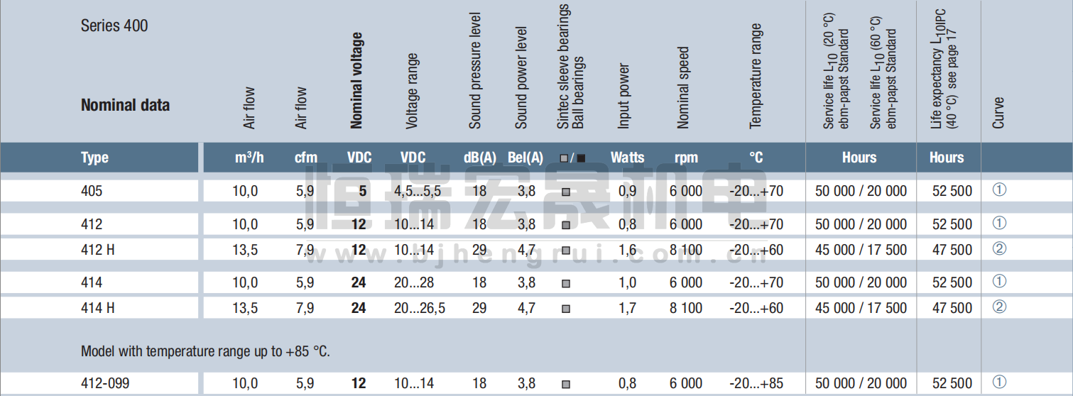 德國ebmpapst原裝405 412 412H 414 414H 412-099風機的曲線圖