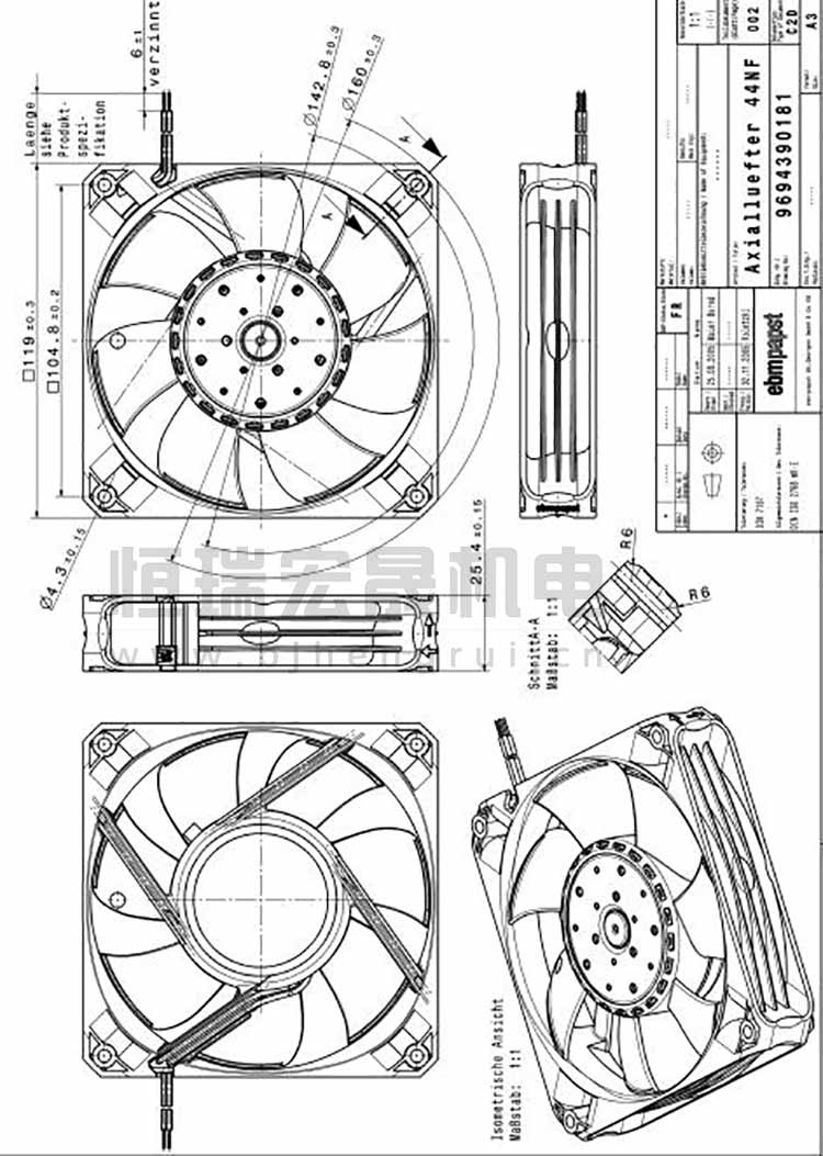 德國ebmpapst 4414FNN軸流風機結構圖