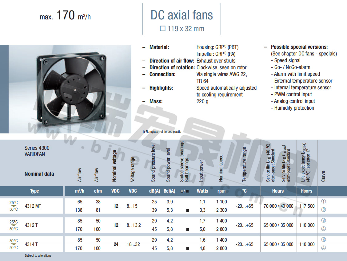 4312-179風量:204m³/h 電壓:12v 噪音:51Db 功率:9.4W 轉速:3400r/min