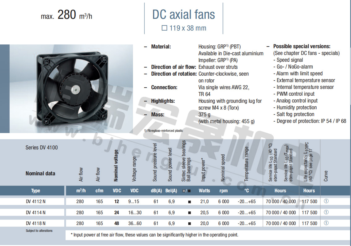 德國ebm全新DV4112N DV4114N DV4118N緊湊型風機曲線圖