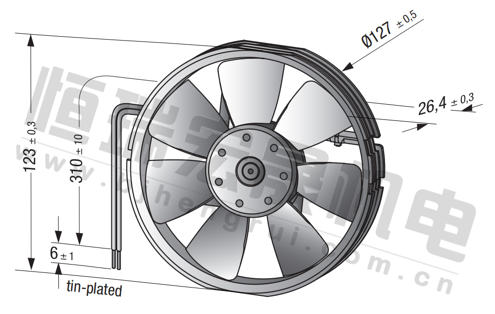 4414FG風量:170m³/h 電壓:24v 噪音:43Db 功率:5.0W 轉速:2900r/min