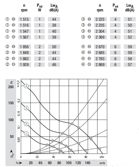 4414FM風量:140m³/h 電壓:24v 噪音:38Db 功率:3.1W 轉速:2400r/min