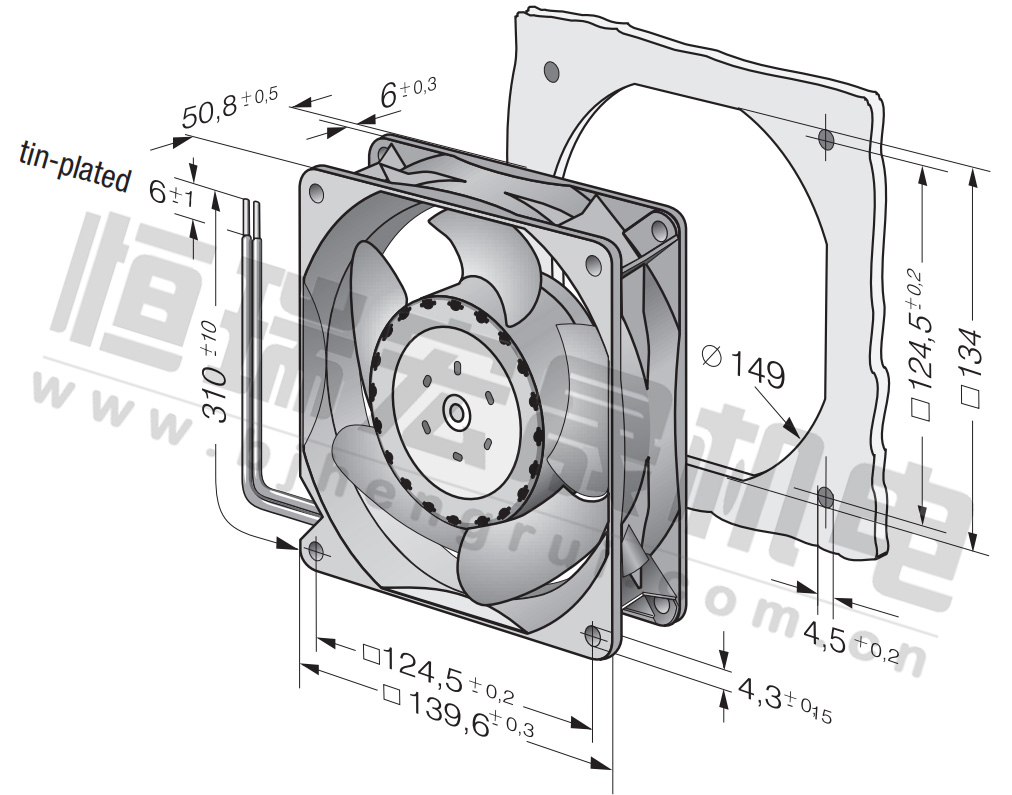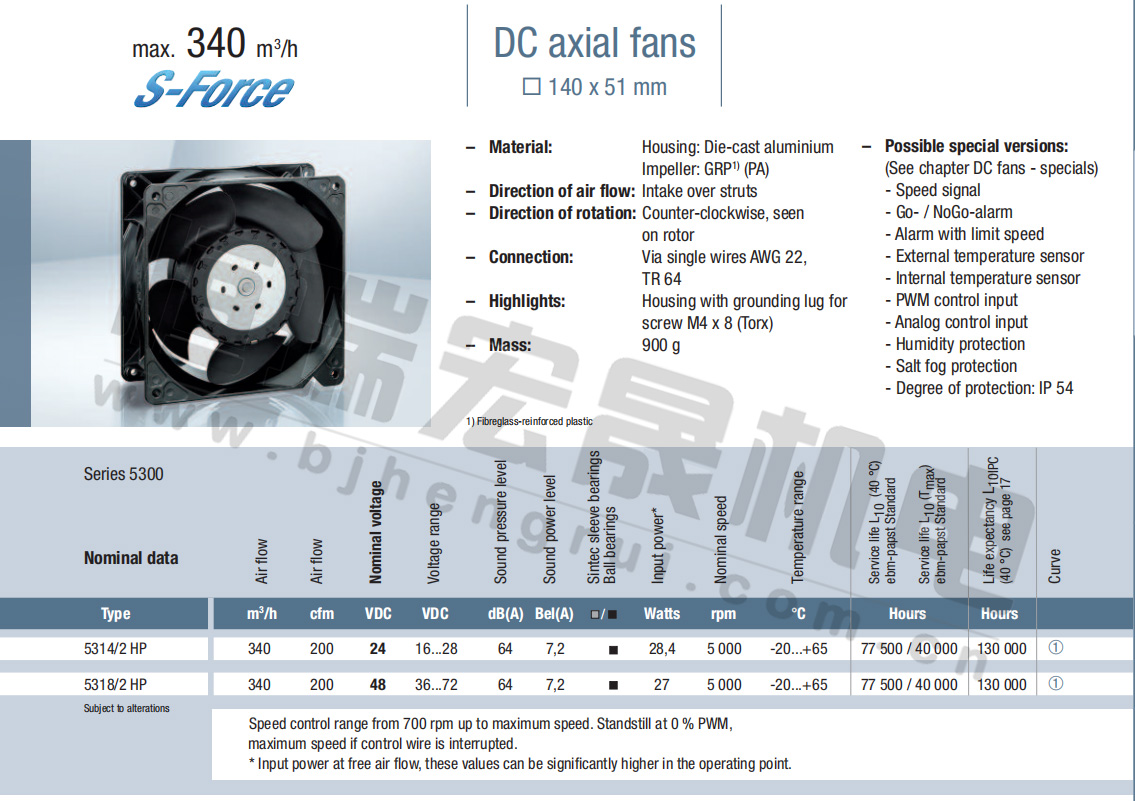 5314/2HP 風量:340m³/h 電壓:24v 噪音:64Db 功率:28.4W 轉速:5000r/min