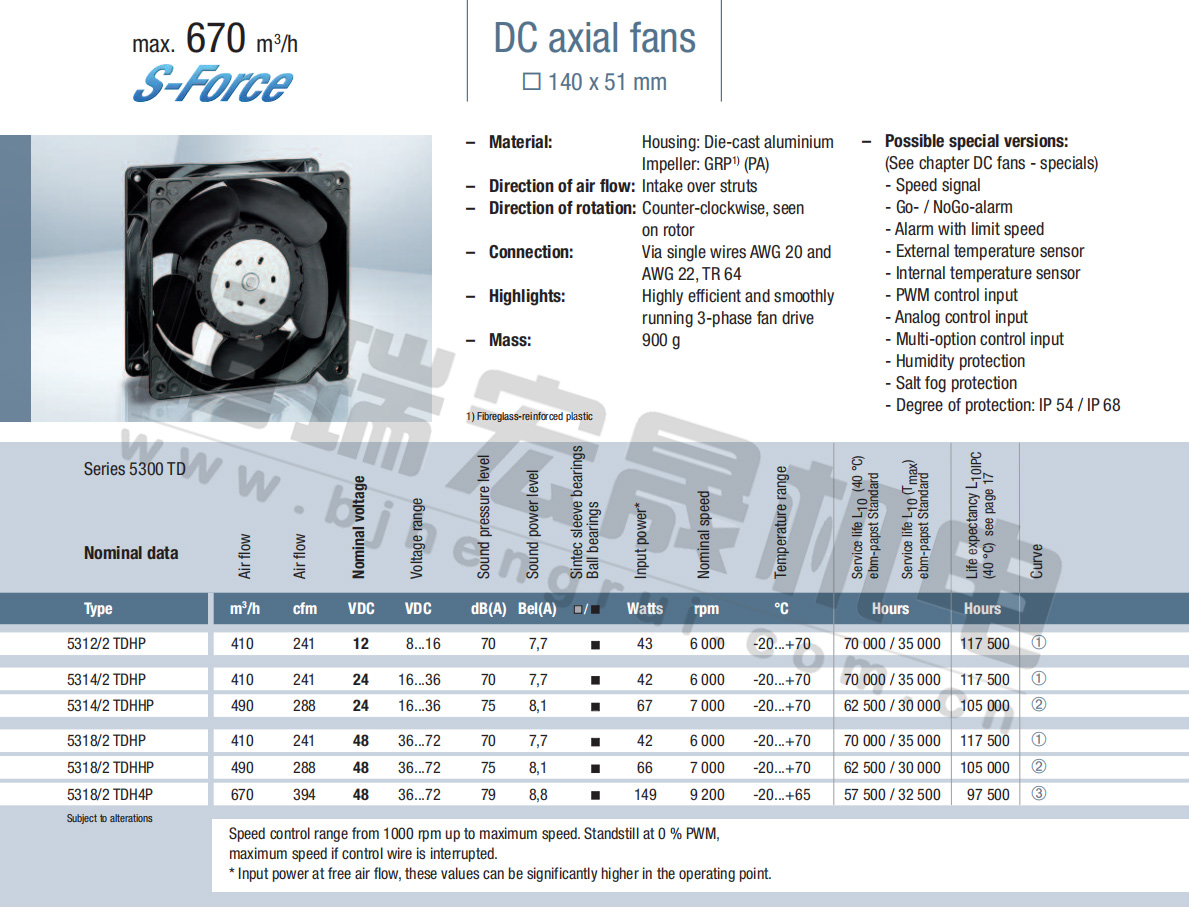 5314/2TDHHP 風量:490m³/h 電壓:24v 噪音:75Db 功率:67W 轉速:7000r/min