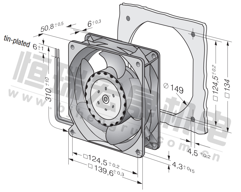 5314/2HP 風量:340m³/h 電壓:24v 噪音:64Db 功率:28.4W 轉速:5000r/min
