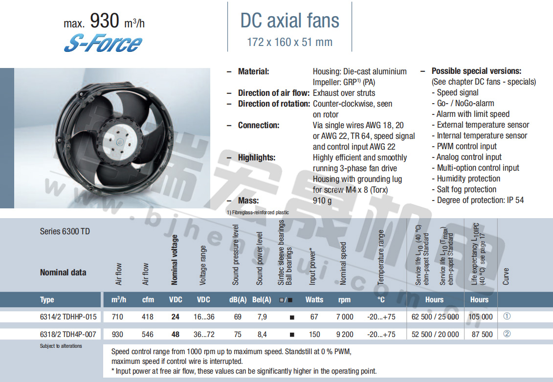 6318/2TDH4P-007 風量:930m³/h 電壓:48v 噪音:75Db 功率:150W 轉速: 9200r/min