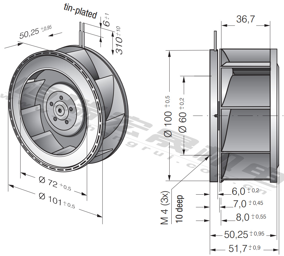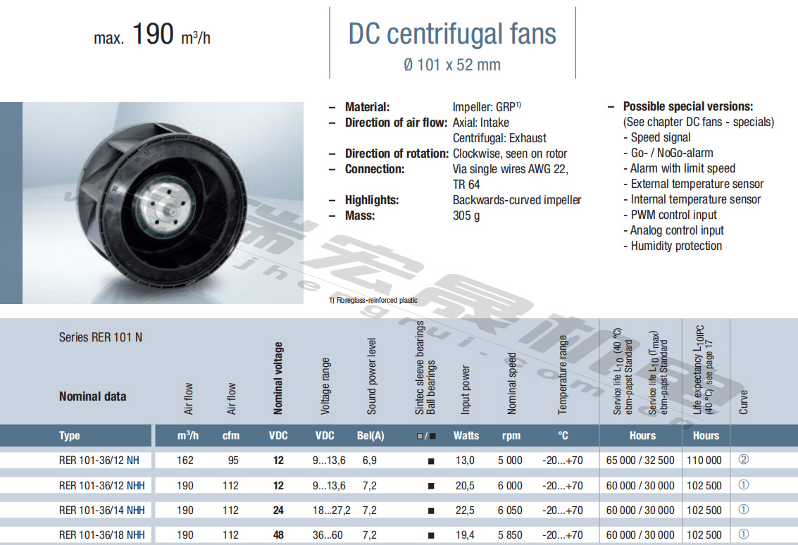 RER101-36/14NHH風量:190m³/h 電壓:24v 電流:7.2A 功率:22.5W 轉速:6050r/min