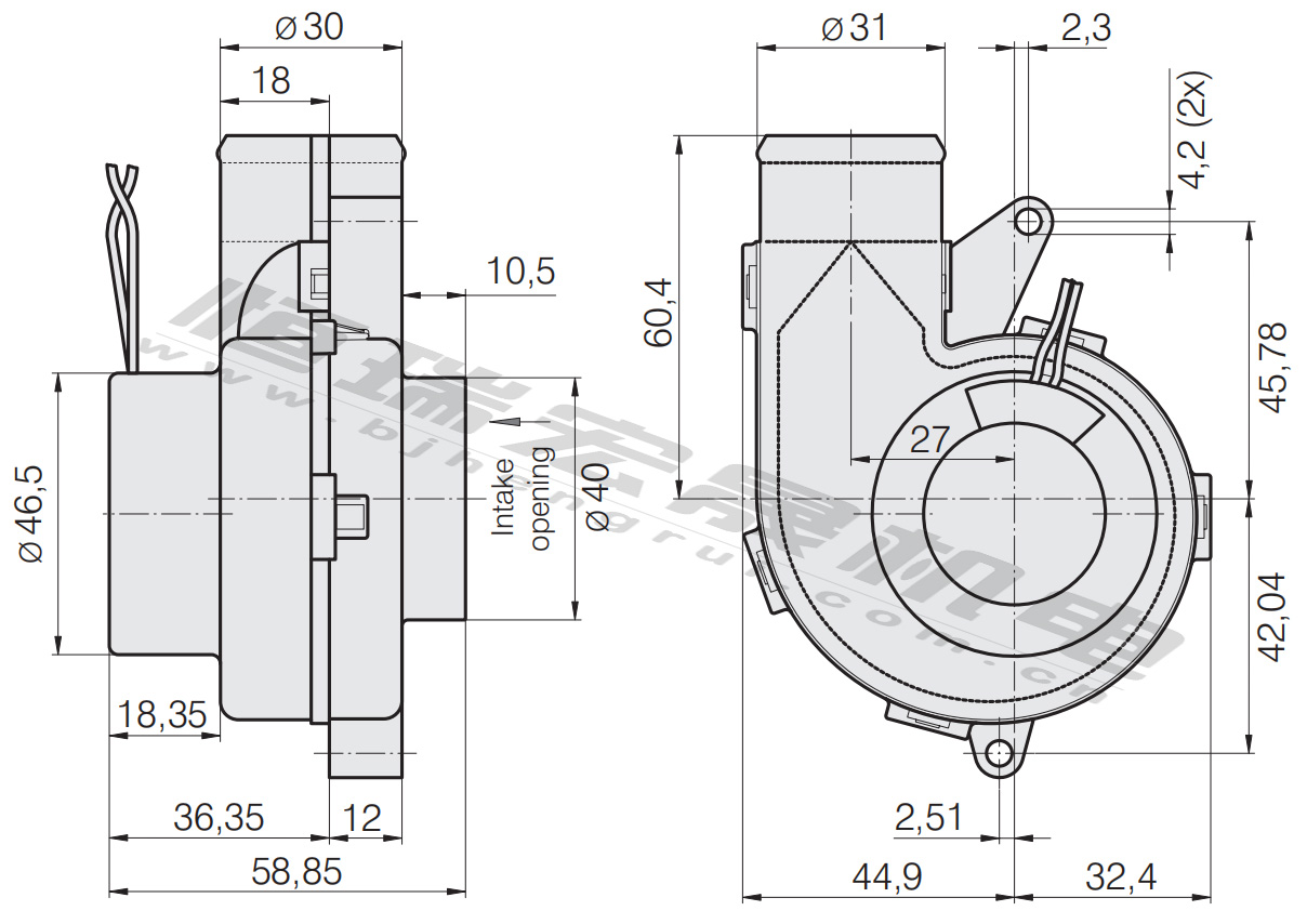 RL48-19/14 風量:28m³/h 電壓:24v 電流:5.7A 功率:4.4W 轉速:4400r/min