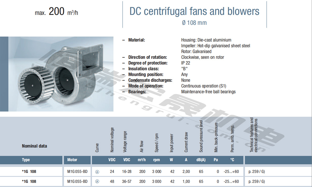 G1G108-AB17-02風量:200m³/h 電壓:24v 電流: 2A 功率:42W 轉速:3000r/min