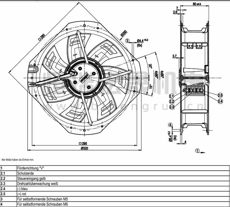 德國ebmpapst W1G250-HJ87-02軸流風機結構圖