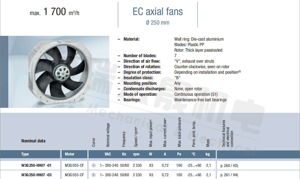 德國ebm全新W3G250-HH07-01 W3G250-HH07-03緊湊型風(fēng)機(jī)規(guī)格圖