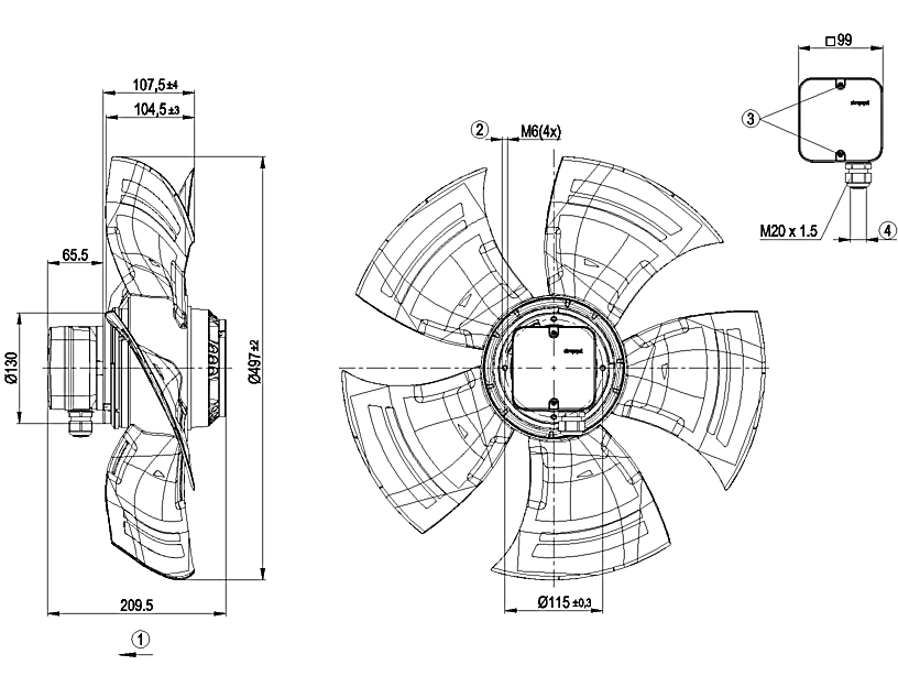 德國ebm全新A4D500-AM03-01軸流風(fēng)機(jī)規(guī)格圖