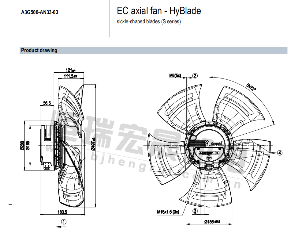 北京恒瑞宏晟低價供應A3G500-AN33-03軸流風機,適用于通風散熱制冷行業、