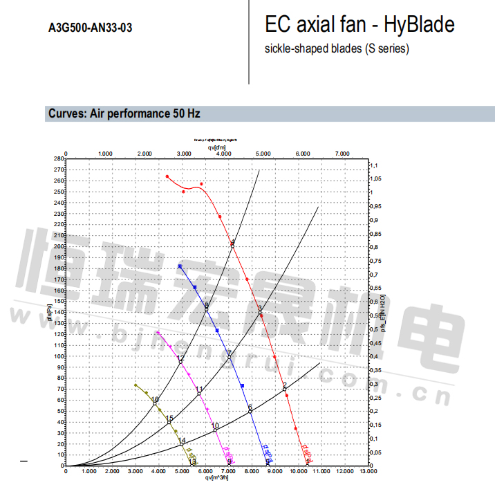 德國ebm全新A3G500-AN33-03軸流風機曲線圖