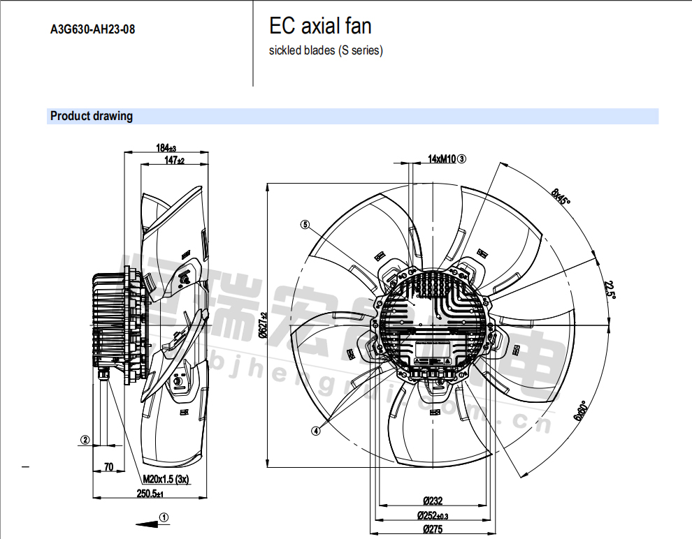 德國(guó)ebmpapst原裝A3G630-AH23-08風(fēng)機(jī)的規(guī)格圖