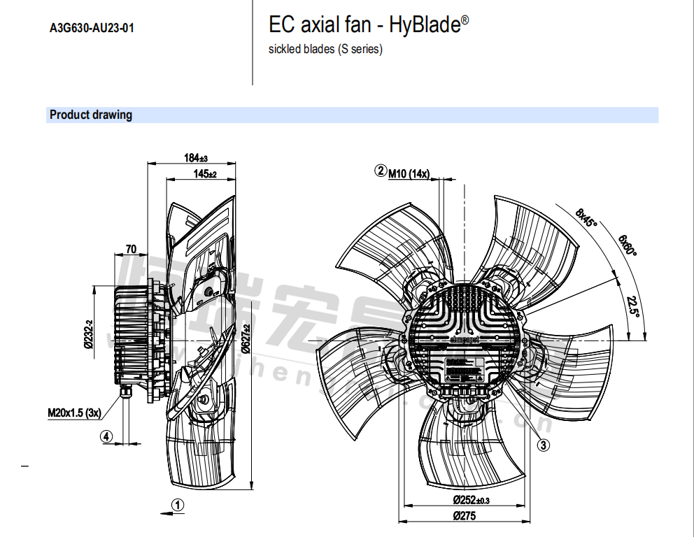 德國ebm全新A3G630-AU23-01軸流風(fēng)機(jī)規(guī)格圖