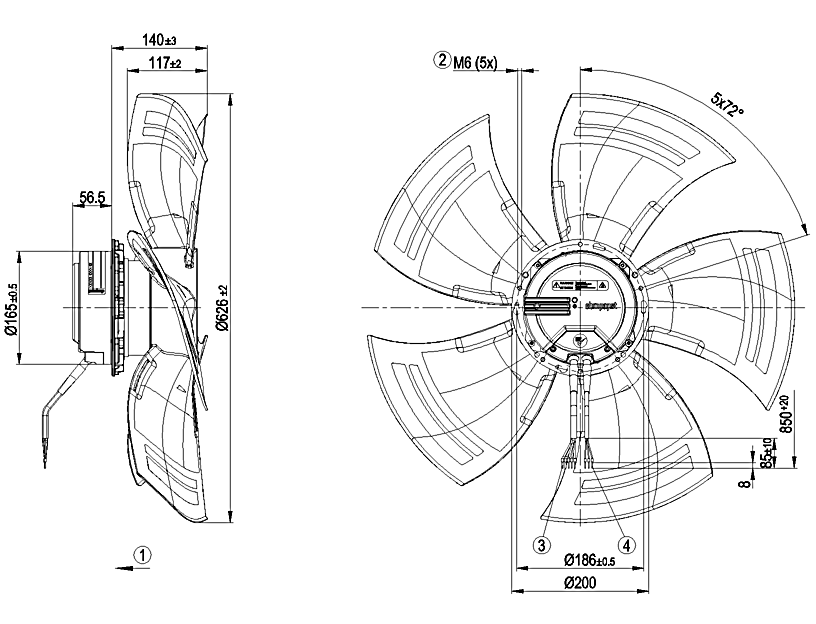 德國ebm全新A3G630-AQ37-21軸流風機規格圖